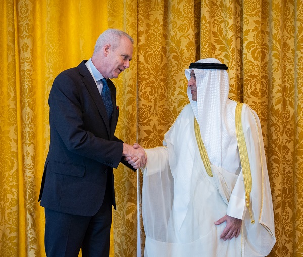 وناقش معاليه خلال اللقاء التحديات التي تواجه العالم، والتي تهدد الأمن والاستقرار الإقليمي والدولي، بالإضافة إلى التباحث حول الحاجة إلى تعزيز الاستقرار في المنطقة وصون السلم والأمن الدوليين، بالإضافة لمتابعة آخر المستجدات على الساحتين الإقليمية والدولية ومناقشة الموضوعات ذات الاهتمام المشترك.