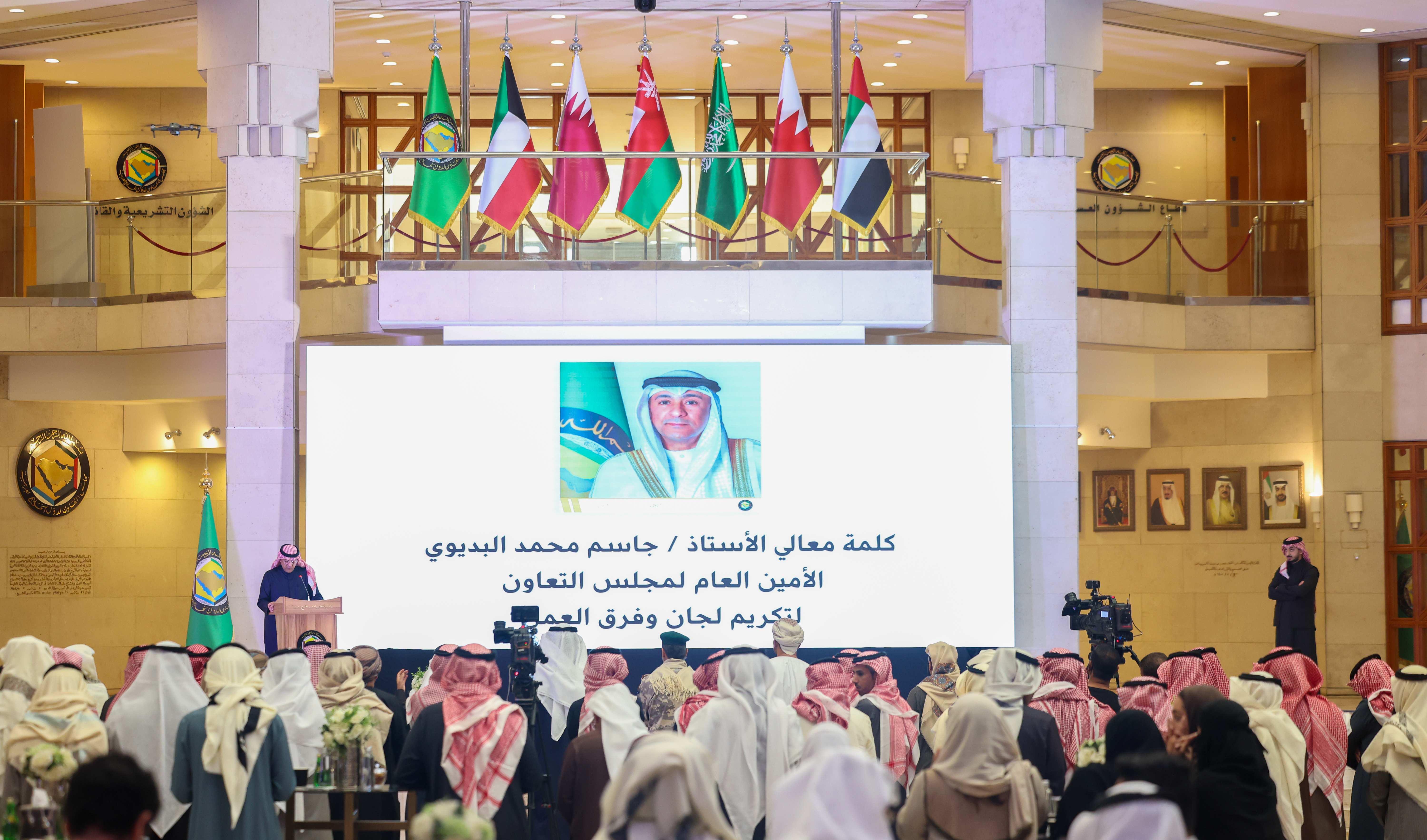 أكد معالي الأستاذ جاسم محمد البديوي، الأمين العام لمجلس التعاون لدول الخليج العربية، بأن حفل التكريم السنوي يأتي للاحتفاء بالمتقاعدين تقديراً لإسهاماتهم وبصماتهم الطيبة، وتكريماً لفرق العمل، تقديراً لجهودهم الطيبة في التعريف بالمنجزات المباركة لمسيرة العمل الخليجي المشترك، وتحقيقهم لإنجازات خليجية جديدة.