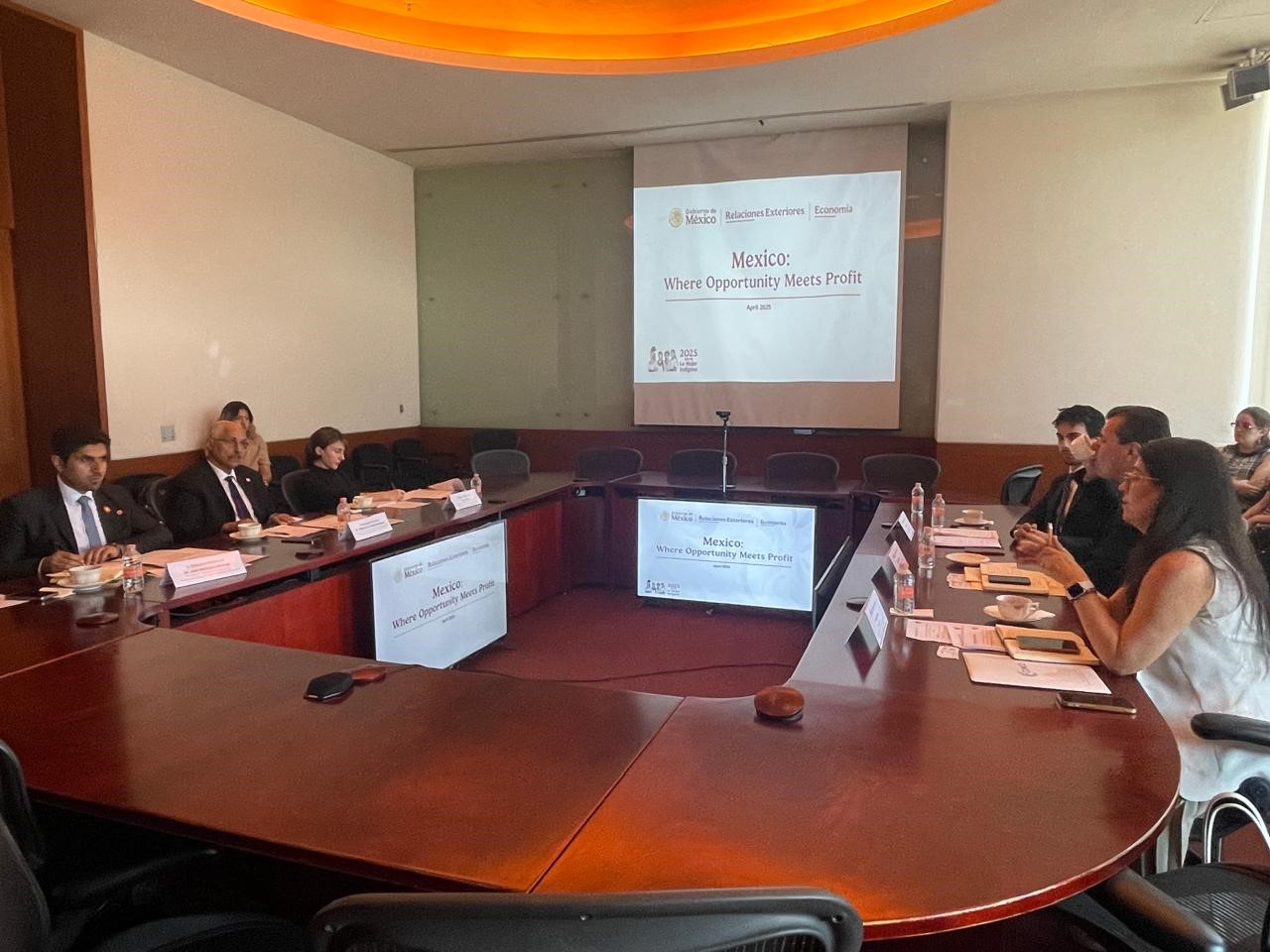 وقد تم الاجتماع بعدد من المسؤولين عن العلاقات الخارجية والدولية والمسؤولين في الإدارة العامة لتشجيع الاقتصاد والاستثمار بوزارة الخارجية، وكذلك المسؤولين في وزارة الاقتصاد، والمركز الدولي لتحسين الذرة والقمح وعدد من ممثلي القطاع الخاص، وجرى خلال تلك الاجتماعات مناقشة أوجه التعاون المشترك بين مجلس التعاون والمكسيك، وتبادل وجهات النظر حول القضايا ذات الاهتمام المشترك بين الجانبين والفرص الممكنة التي يمكن من خلالها تحقيق المزيد من التعاون من خلال الحوار السياسي، والتعاون الاقتصادي والتجاري والاستثماري، والتعاون الثقافي والسياحي.