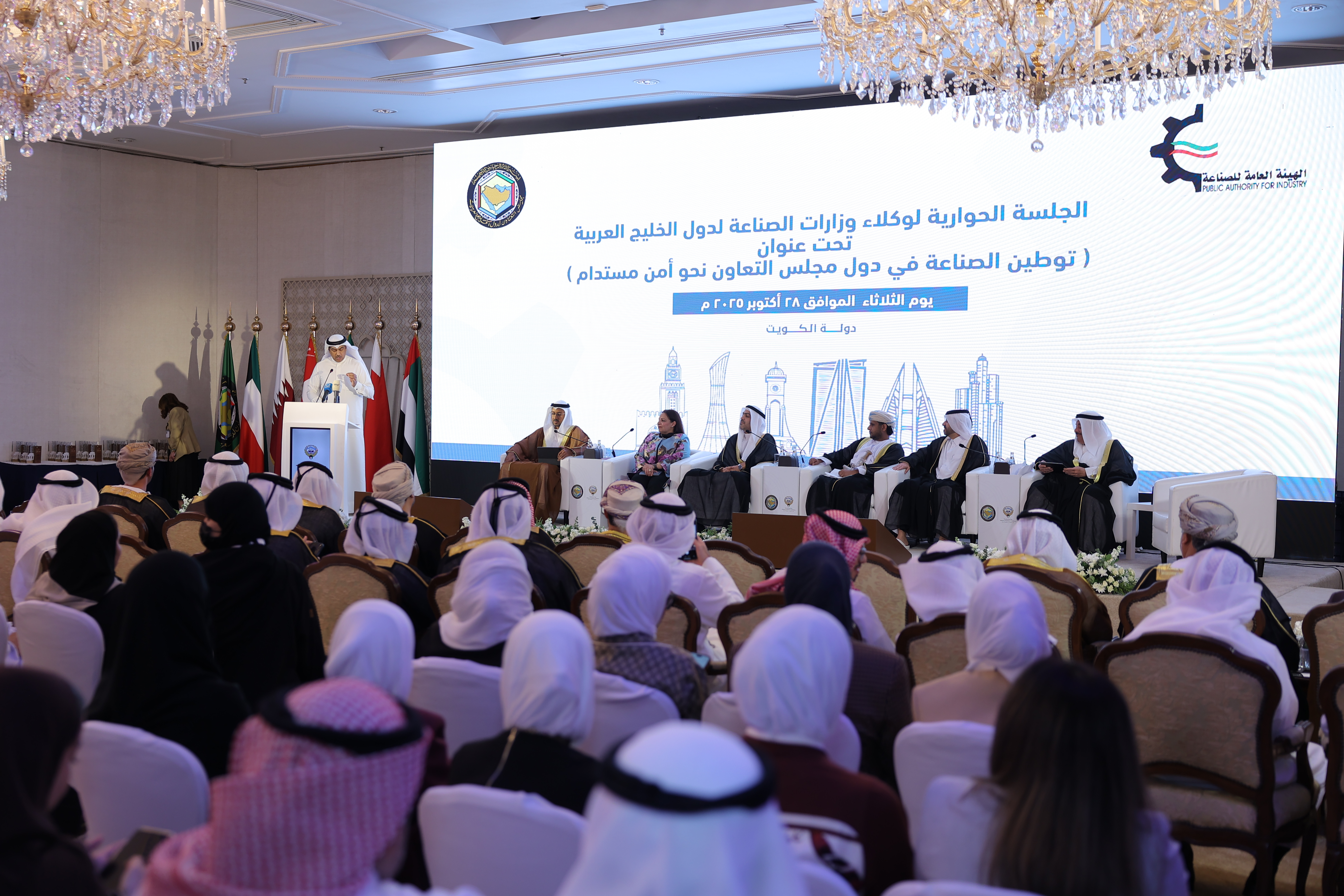 شارك وكلاء وزارات الصناعة في دول مجلس التعاون لدول الخليج العربية بتاريخ 28 أكتوبر 2025م في جلسةٍ حوارية بعنوان “توطين الصناعة في دول مجلس التعاون نحو أمنٍ مستدام"، وذلك ضمن فعاليات المعرض الخليجي الصناعي 2025، المقام على هامش اجتماع لجنة التعاون الصناعي الـ55 في دولة الكويت.