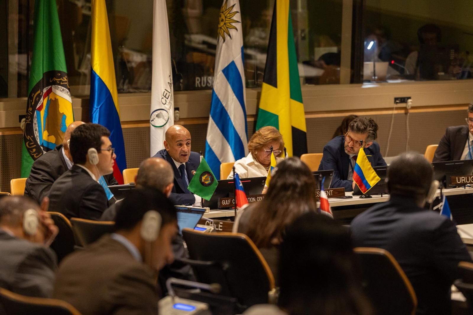 جاء ذلك خلال كلمة معاليه في الاجتماع المشترك بين مجلس التعاون ومجموعة دول أمريكا اللاتينية ومنطقة البحر الكاريبي (سيلاك)، برئاسة مشتركة بين معالي الأستاذ جاسم محمد البديوي، الأمين العام لمجلس التعاون لدول الخليج العربية، ومعالي السيدة روزا يولاندا فيلافيسينسيو، وزيرة خارجية جمهورية كولومبيا (دولة الرئاسة لسيلاك 2025)، وبحضور أصحاب المعالي والسعادة مندوبي مجموعة دول أمريكا اللاتينية ومنطقة البحر الكاريبي، اليوم الجمعة الموافق 26 سبتمبر 2025م، وذلك على هامش اجتماعات الدورة الثمانين للجمعية العامة للأمم المتحدة في الولايات المتحدة الأمريكية بنيويورك.
