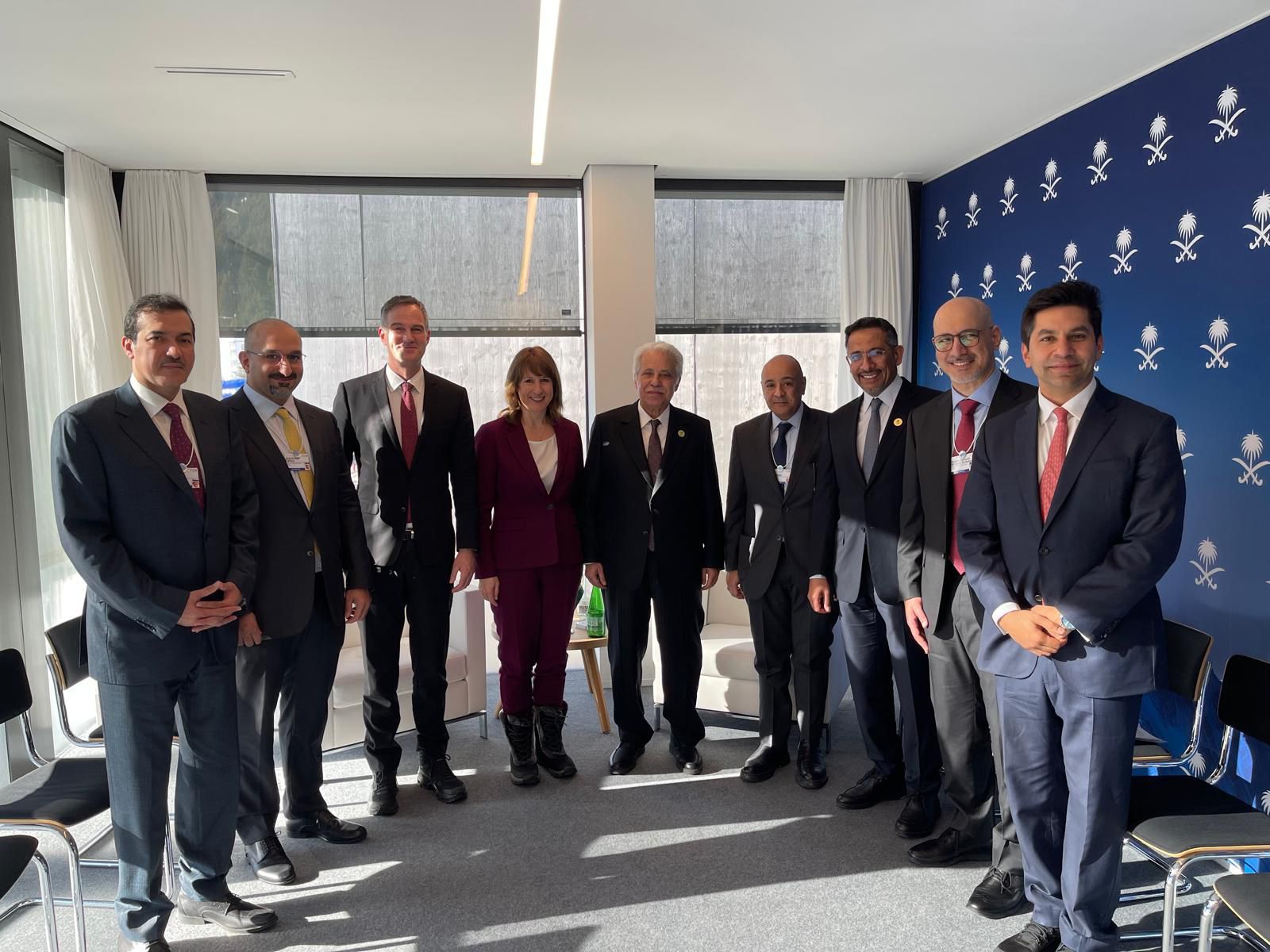 وزير الصناعة والثروة المعدنية في المملكة العربية السعودية، وسعادة الأستاذ أحمد السيد وزير الدولة للشؤون التجارة الخارجية، ومعالي الأستاذ خليفة عبدالله العجيل العسكر وزير التجارة والصناعة في دولة الكويت، والسيدة رايتشل ريفز المستشارة الأولى للشؤون المالية في المملكة المتحدة، اليوم الاربعاء الموافق 21 يناير 2026م، في مدينة دافوس السويسرية، على هامش الاجتماع السنوي السادس والخمسين للمنتدى الاقتصادي العالمي 2026.