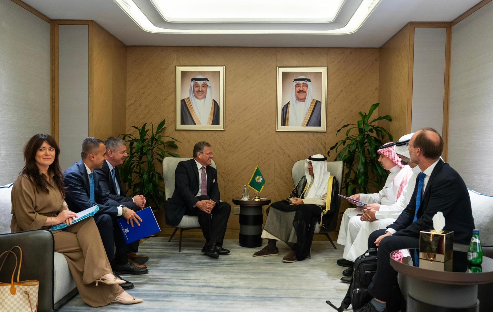 His Excellency Mr Jasem Mohamed Albudaiwi, Secretary General of the Gulf Cooperation Council (GCC), met with His Excellency Mr Maroš Šefčovič, European Union (EU) Commissioner for Trade and Economic Security, and for Institutional Relations and Transparency, Wednesday, November 6, 2025, in Kuwait City. The meeting took place on the sidelines of the 9th GCC-EU Economic Forum.