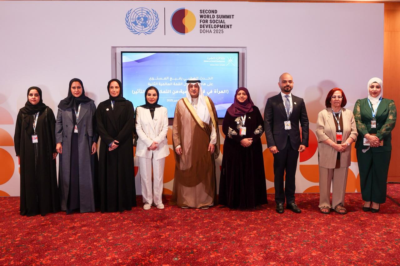 These remarks were made during His Excellency's speech at the event titled "Women at the Heart of Development: From Empowerment to Impact". The event was held on the sidelines of the 2nd World Summit for Social Development, today, Wednesday, November 5, 2025, in the Qatari capital, Doha, with the participation of several ministers, representatives of countries, regional and international organisations, and experts in the field.